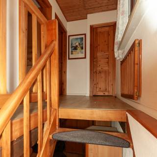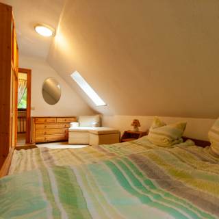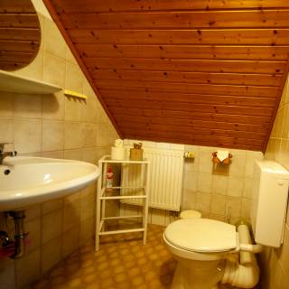 Das Ferienhaus liegt gleich hinter unserem Hof, umgeben von alten Bäumen auf einem eingezäunten Gartengrundstück mit eigenem Parkplatz. Es hat eine Wohnfläche von 75 qm mit 2 Doppelbettschlafzimmern und einer Toilette im Obergeschoß. Im Erdgeschoß befindet sich das Wohnzimmer, eine voll ausgestattete Küche inkl. Spülmaschine und eine Dusche mit WC.