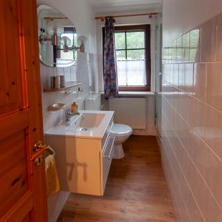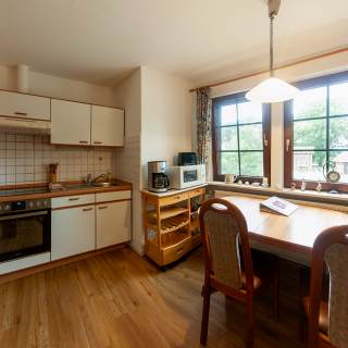 Die Gänsewohnung befindet sich in unserem Bauernhaus in der ersten Etage und hat 38 qm Wohnfläche mit einem Doppelbettschlafzimmer und einer Schlafcouch, einer voll ausgestatteten Küchenzeile ohne Spülmaschine im Wohnzimmer und einer Dusche mit WC.