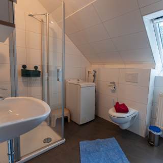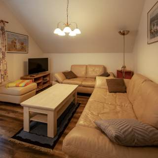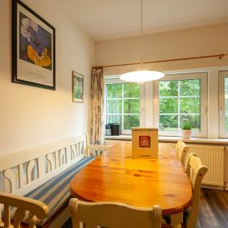 Die Schwalbenwohnung liegt in der 1. Etage von einem Nebengebäude auf unserem Hof. Sie hat einen separaten Eingang, 75 qm Wohnfläche mit einem Doppelbettschlafzimmer und einem größeren Schlafzimmer mit einem Doppelbett und einem Einzelbett sowie einem Vollbad und einer kleinen voll ausgestatteten Küche inkl. Spülmaschine.